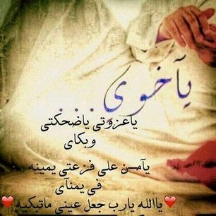 يا خوي يا عزوتي (يا ضحكتي وبكأي) يامن على فزعتي يمينه في يمناي من لي سواك اللي على أكتافه أرتكي أنت العضيد اللي أشد فيك الظهر يا أخوي.